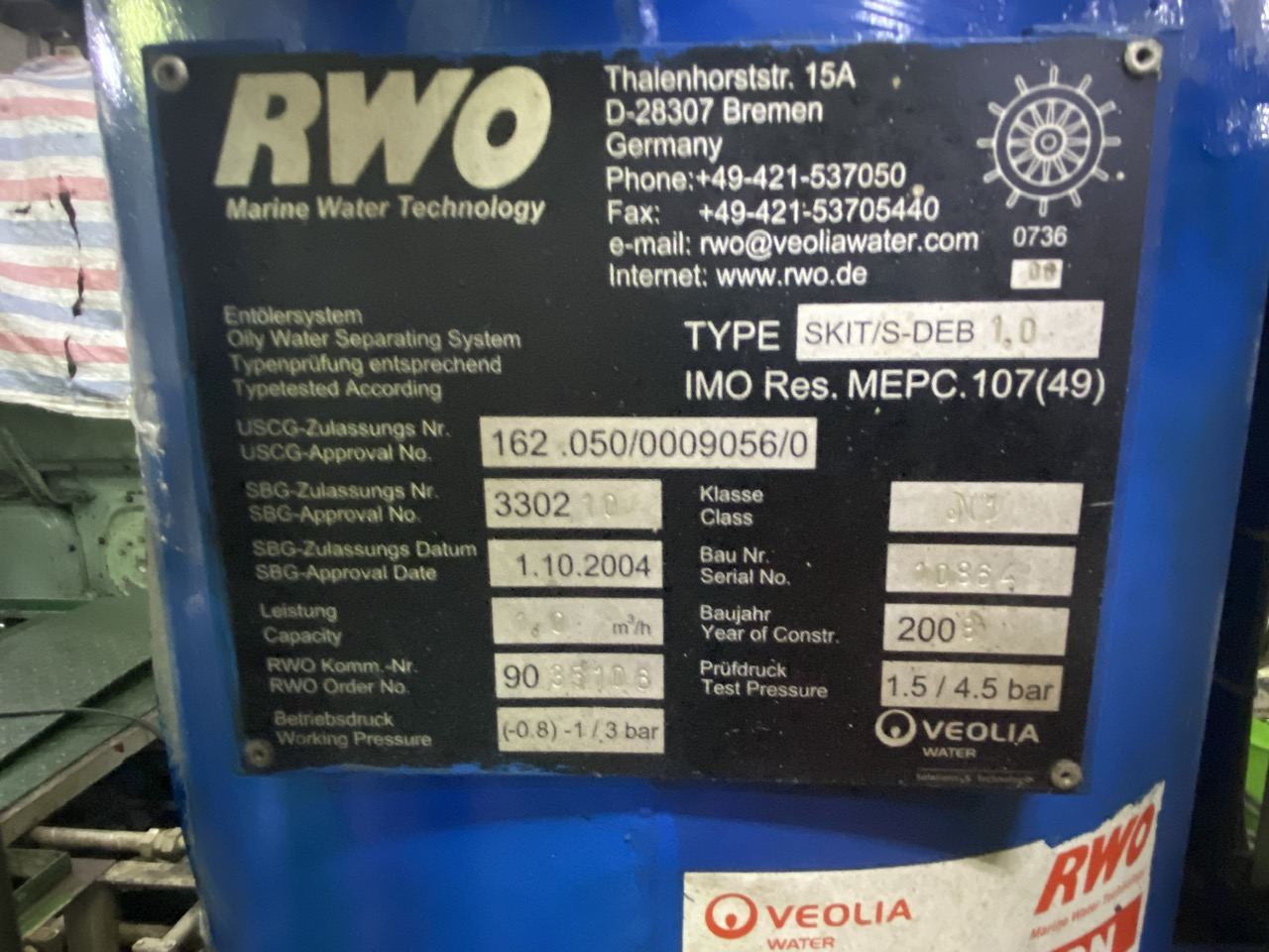 * Máy phân ly dầu nước: hiệu RWO, model: SKIT/S-DEB 1.0, sản lượng: 1 m3/h