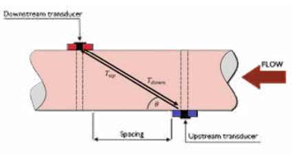 Phần mềm tính toán thời gian cần thiết để xung siêu âm truyền từ bộ phát đến bộ thu, tùy thuộc vào lưu lượng.