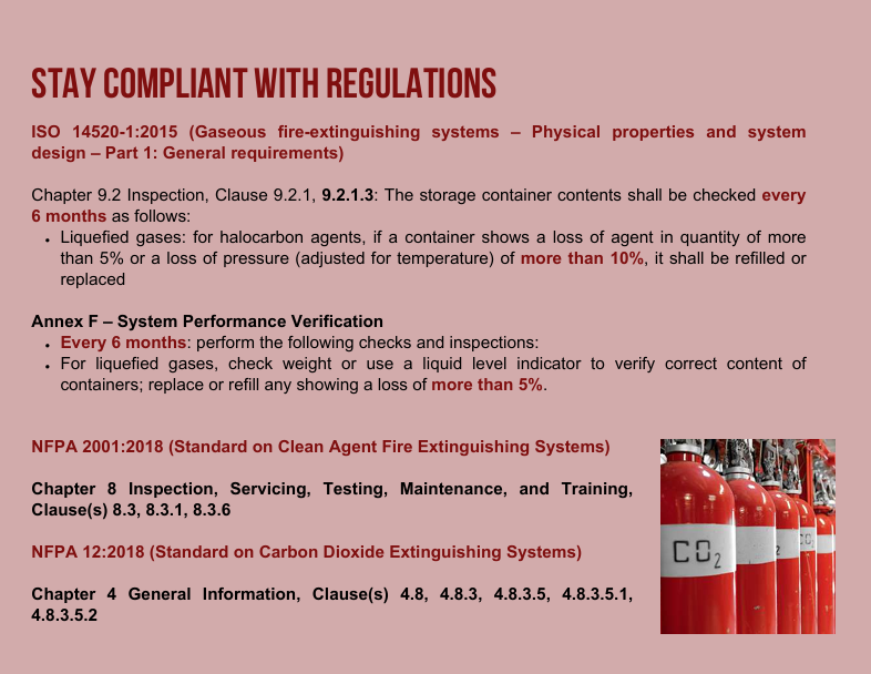 Khí hóa lỏng: đối với khí halocarbon, nếu bình chứa bị hao hụt dung tích hơn 5% hoặc áp suất (điều chỉnh theo nhiệt độ) hơn 10%, phải được nạp lại hoặc thay thế.