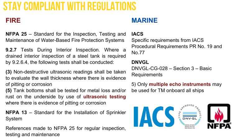 * Đáp ứng các yêu cầu của các cơ quan đăng kiểm hàng hải về thiết bị kiểm tra đo độ dày dùng trong hàng hải.